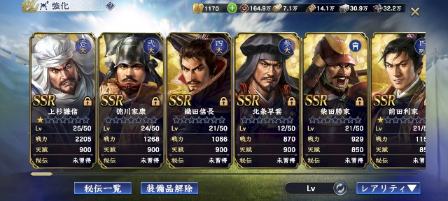序盤は、これらの武将を中心に部隊を強化して、ゲームをスムーズに進めましょう。また、何度でも挑戦できるので、どんどん挑戦しましょう。